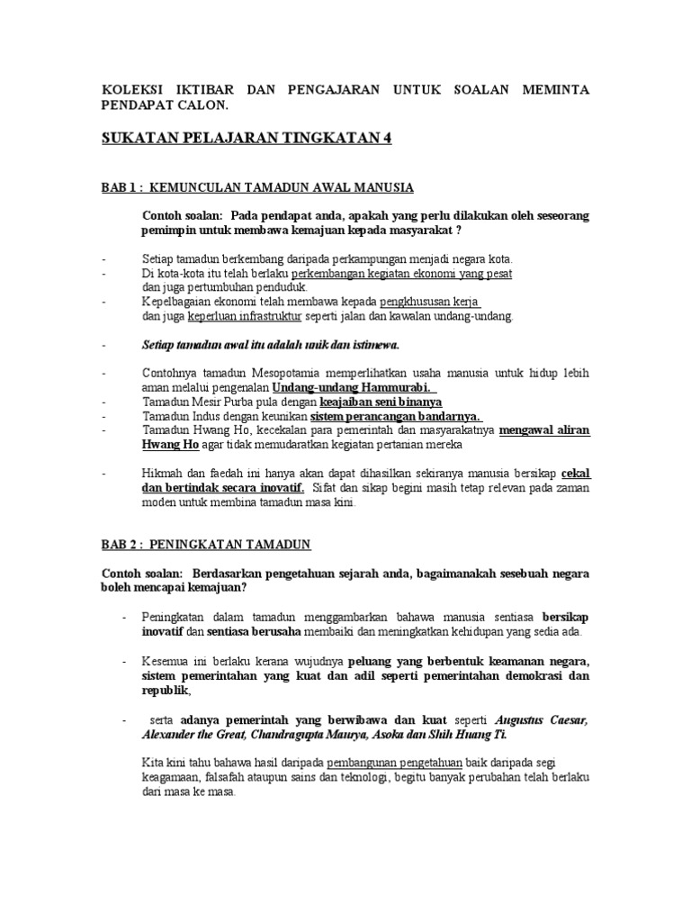Sejarah Kertas 3 SPM 2013 Contoh2_Soalan_Cadangan Jawapanpdf. Rumusan Pengetahuan yang diperoleh Iktibar kepada diri bangsa dan negara Harapan untuk masa depan ekonomi Malaysia yang lebih cemerlang. Kedaulatan negara dan bangsa Malaysia Cabaran yang dihadapi Malaysia kini Cadangan untuk mengatasi cabaran Menghayati nilai-nilai murni iktibar patriotisme daripada pembentukan Malaysia Merumus secara keseluruhan isi yang.